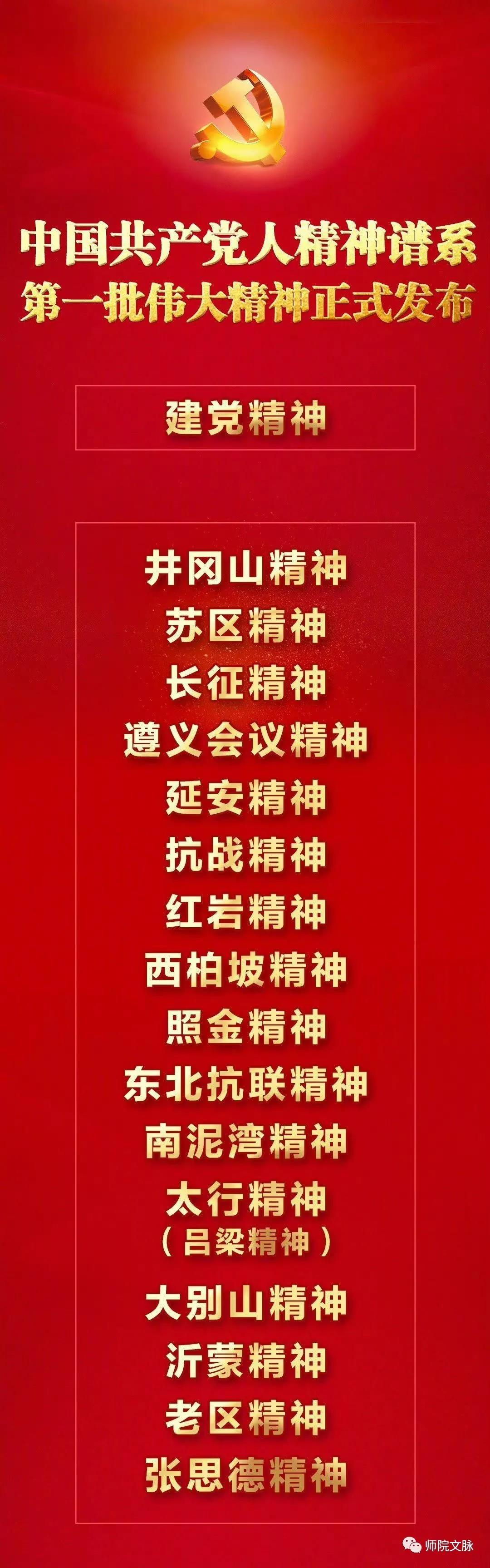 习近平总书记强调,一百年来,中国共产党弘扬伟大建党精神,在长期奋斗中构建起中国共产党人的精神谱系,锤炼出鲜明的政治品格。2021年9月,党中央批准了中央宣传部梳理的第一批纳入中国共产党人精神谱系的伟大精神,在中华人民共和国成立72周年之际予以发布。