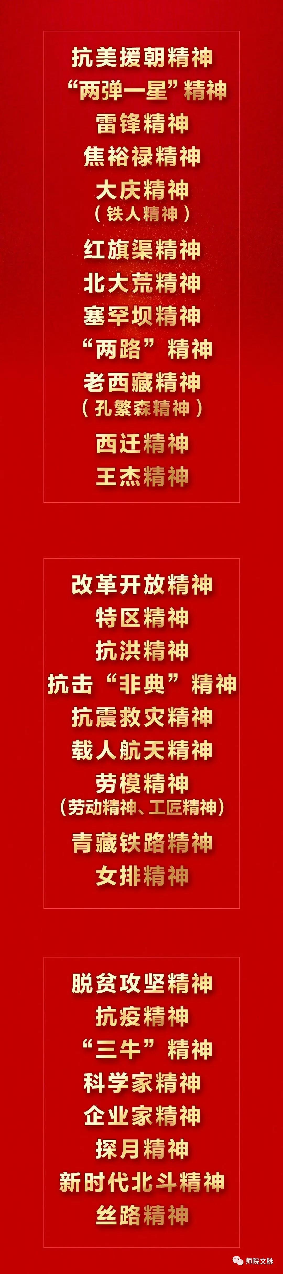 这些精神,集中彰显了中华民族和中国人民长期以来形成的伟大创造精神、伟大奋斗精神、伟大团结精神、伟大梦想精神,彰显了一代又一代中国共产党人“为有牺牲多壮志,敢教日月换新天”的奋斗精神。我们要坚持以习近平新时代中国特色社会主义思想为指导,深入学习贯彻习近平总书记“七一”重要讲话精神,在全党全社会大力弘扬伟大建党精神、深入宣传中国共产党人精神谱系,将其作为党史学习教育和“四史”宣传教育的重要内容,更好地鼓舞激励党员干部群众弘扬光荣革命传统、赓续红色血脉,不断增强“四个意识”、坚定“四个自信”、做到“两个维护”,为实现中华民族伟大复兴凝聚起奋勇前进的强大精神力量。