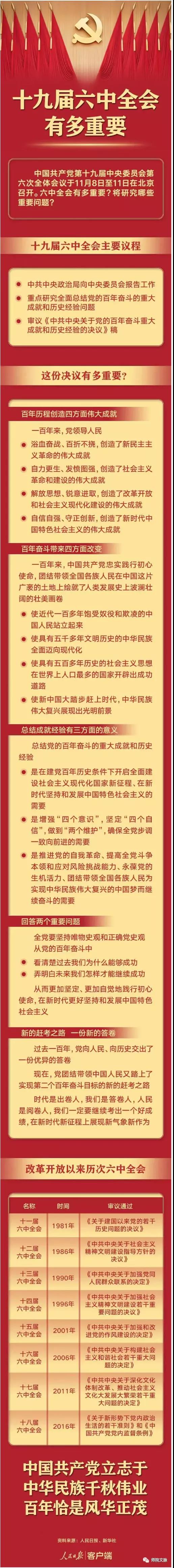 2021年11月8日至11日,中国共产党第十九届中央委员会第六次全体会议将在北京召开。肩负着承前启后、继往开来的伟大使命,此次会议重点研究全面总结党的百年奋斗的重大成就和历史经验问题。六中全会有多重要?让我们一起来了解一下: