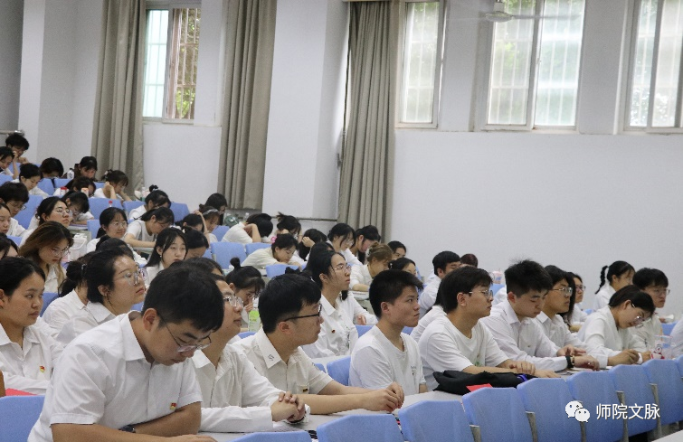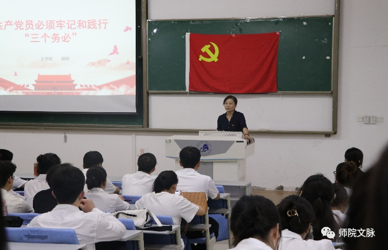 为进一步学习贯彻习近平新时代中国特色社会主义思想,使学生党员始终保持居安思危的政治清醒、坚如磐石的战略定力和勇于斗争的奋进姿态,以更加昂扬的姿态迎接前进路上的风险与挑战,6月28日下午,文学院党委书记杨阳在博文楼B1教室为学生党员讲授主题教育专题党课,全体学生党员和积极分子代表百余人参加了本次党课。