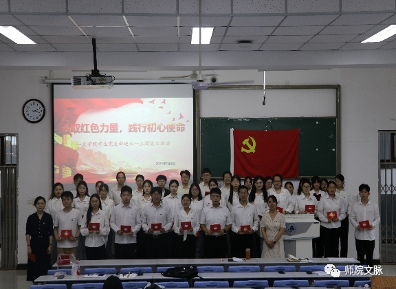 6月28日下午,学生党支部在一教B1开展“汲取红色力量,践行初心使命”的主题党日活动。文学院党委书记杨阳、党委副书记庞曦和全体学生党员、积极分子代表共百余人参加了本次活动。活动由学生支部第一书记康乐主持。