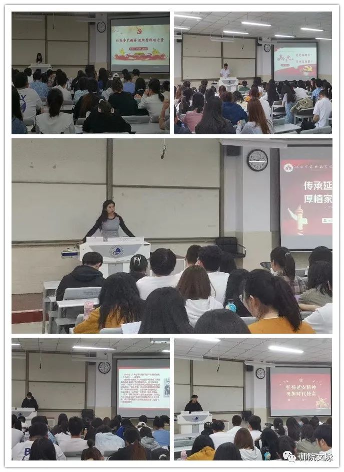 为扎实推进学习贯彻习近平新时代中国特色社会主义思想主题教育走深走实,引导学生党员践行初心使命,弘扬延安精神,增强党性修养,勇担时代使命,5月24日下午,文学院学生党支部在四教阶4开展了“传承延安精神勇担时代使命”主题党日活动。此次活动由学院学生支部第一书记康乐主持。