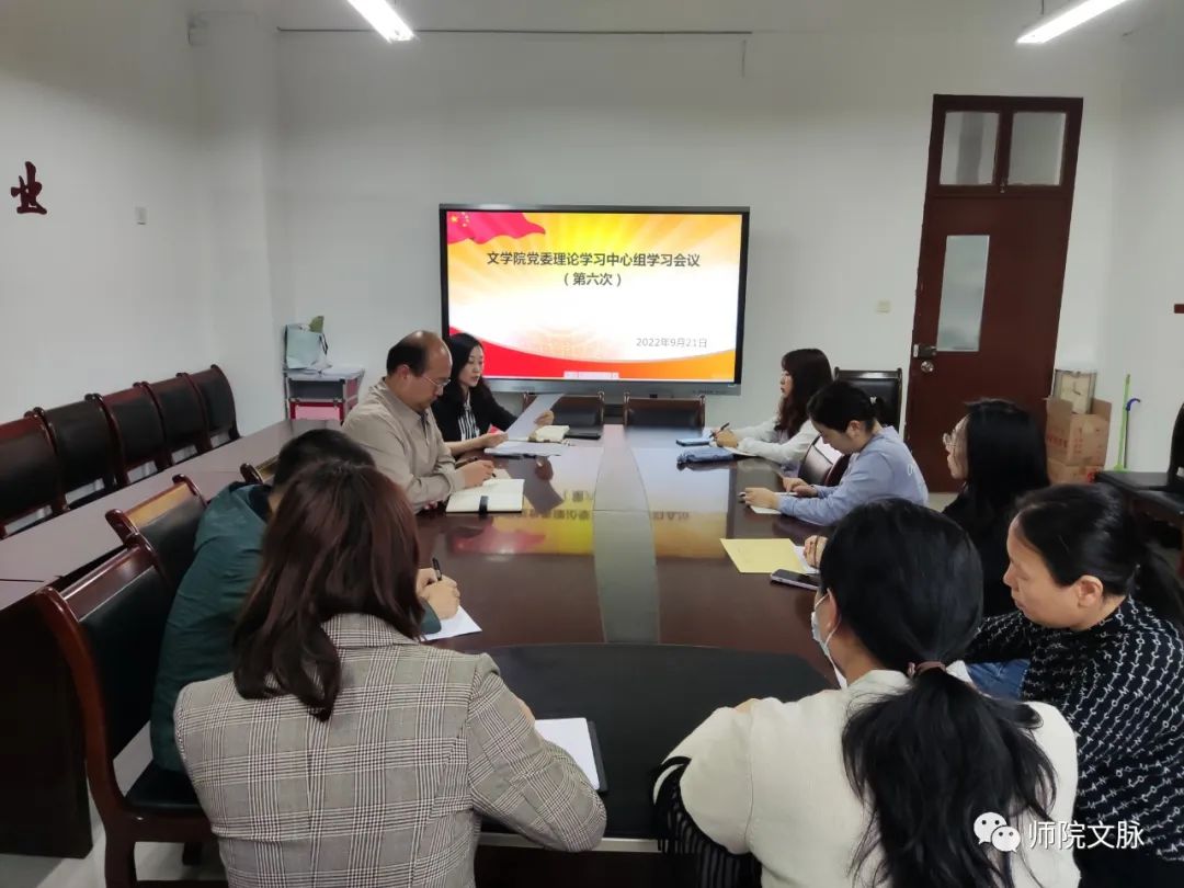 9月21日下午,文学院党委在博文楼A211会议室召开2022年党委理论学习中心组第六次(扩大)集体学习暨作风建设专题学习会。文学院党委理论学习中心组成员、各党支部书记、科级干部参加学习。学习会由学院党委书记杨阳主持。