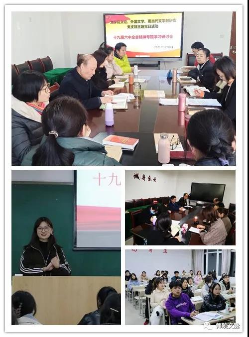 为深入学习贯彻党的十九届六中全会精神,不断用党的先进理论武装头脑,12月8日、9日,文学院党委所属各支部分别召开十九届六中全会精神专题学习会,组织师生党员认真学习全会精神,感悟奋进伟力,推动全会精神入脑、入心、入行。