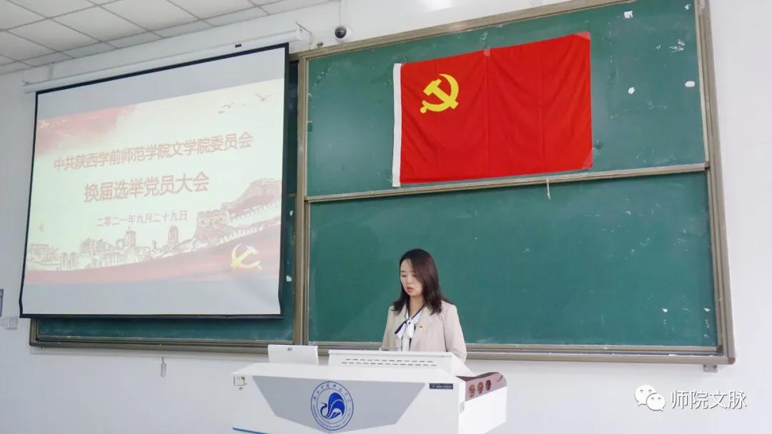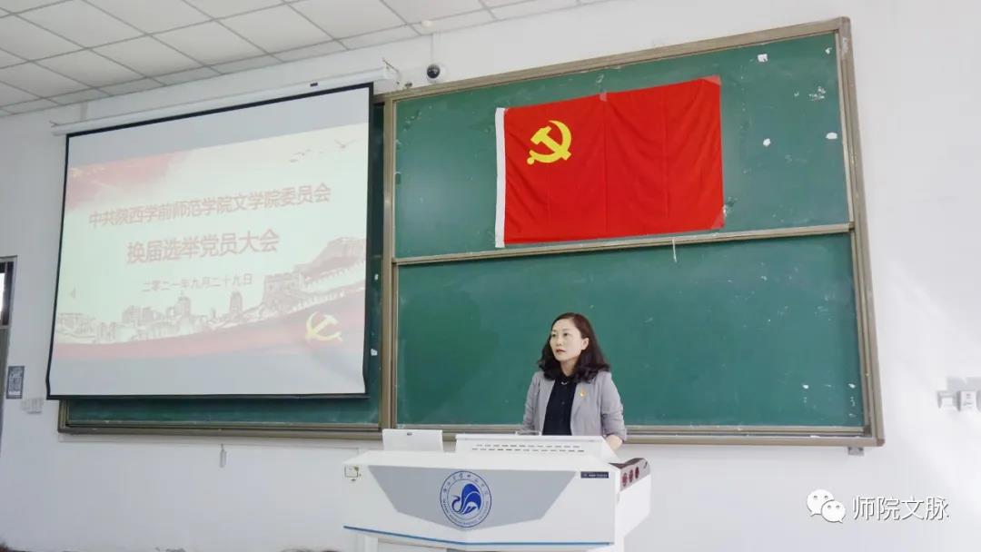 9月29日下午,中共陕西学前师范学院文学院委员会换届选举全体党员大会在长安校区博文楼B1多媒体教室隆重举行,大会审议了上一届党委会工作报告,选举产生了文学院新一届党委委员。学校党委副书记、纪委书记王凯同志以党员身份参加本次大会,校纪委副书记张宇到会指导。会议由文学院党委副书记庞曦主持。