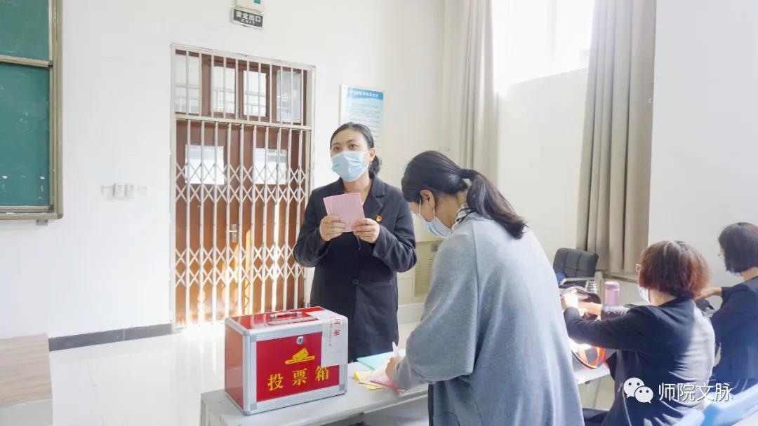 听取党委工作报告后,学院院长牛文明宣读并表决通过了换届选举办法、监票人和计票人名单,并对党委委员候选人情况作了简要介绍。按照选举办法,采取无记名投票的方式进行差额选举,从九名候选人中差额选出了七名党委委员。杨阳、牛文明、庞曦、赵燕、马莉娜、杨亚娟、胡世强同志当选为中共陕西学前师范学院文学院新一届委员会委员。换届选举党员大会在雄壮的《国际歌》和热烈的掌声中胜利闭幕。