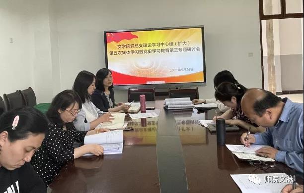 5月26日下午,文学院党总支召开理论学习中心组(扩大)第五次集体学习暨党史学习教育第三专题研讨会。聚焦改革开放新时期历史,围绕“明史崇德”专题进行交流研讨。会议由党总支书记杨阳主持。