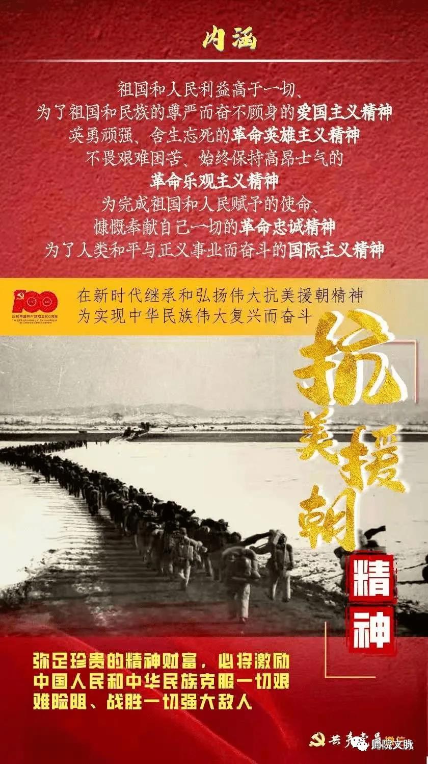 抗美援朝精神,是马克思列宁主义、毛泽东思想同正义战争伟大实践相结合的产物,是人民军队宗旨、本色和作风的体现,是中华民族不畏强暴、敢于斗争的历史传统的弘扬,是中国人民极其宝贵的精神财富。2020年10月19日,习近平总书记前往中国人民革命军事博物馆,参观“铭记伟大胜利 捍卫和平正义——纪念中国人民志愿军抗美援朝出国作战70周年主题展览”时强调,在新时代继承和弘扬伟大抗美援朝精神,为实现中华民族伟大复兴而奋斗。
