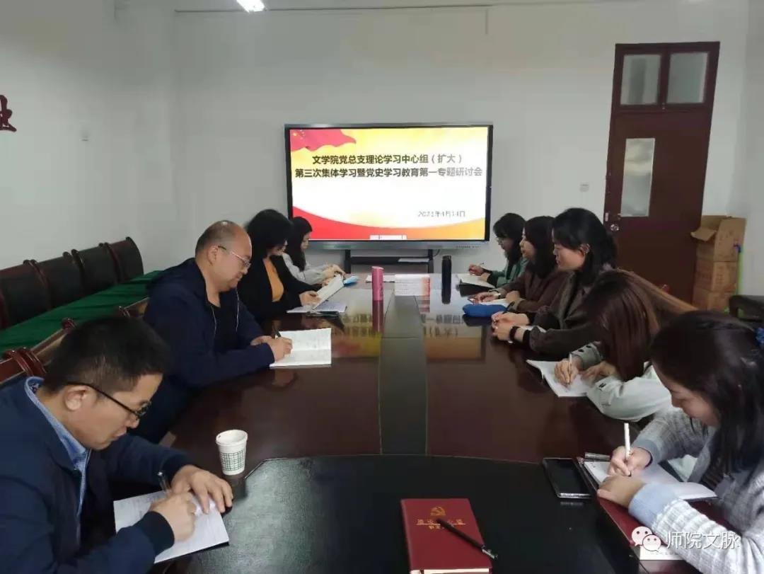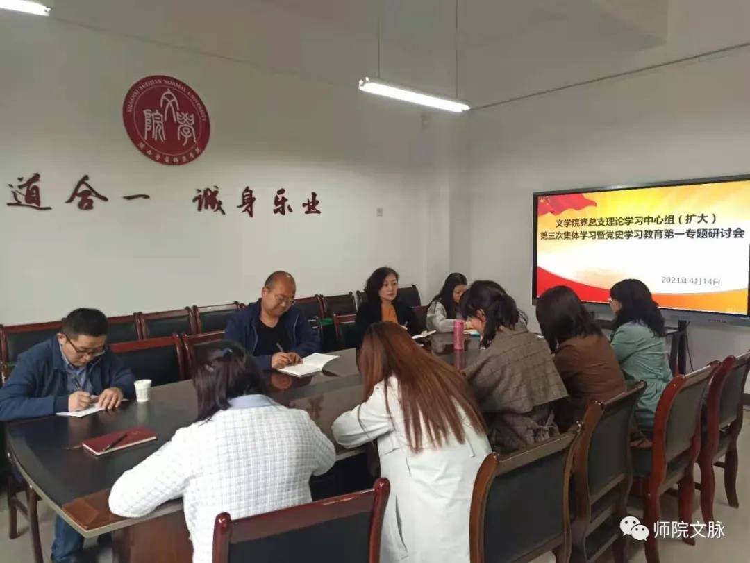 4月15日下午,文学院党总支召开理论学习中心组(扩大)集体学习暨党史学习教育第一次专题研讨会,围绕“新民主主义革命时期历史”进行深入学习和交流研讨。会议由党总支书记杨阳主持。