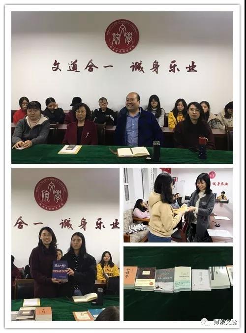教师志愿赠书,关注学生阅读。11月6日下午,文学院中文系党支部、秘书学系和大学语文教学部党支部分别在学院A211和D321会议室开展“赠书促学”志愿活动,全体教师党员为2019级36名建档立卡贫困学生购买赠送了所需书籍,并围绕“怎样开展课外阅读”与学生们进行亲切的座谈交流,鼓励同学们充分利用资源,积极大量阅读,培养书卷气息,从书本中得到人生启迪,并将读书当成一种热爱坚持下去。