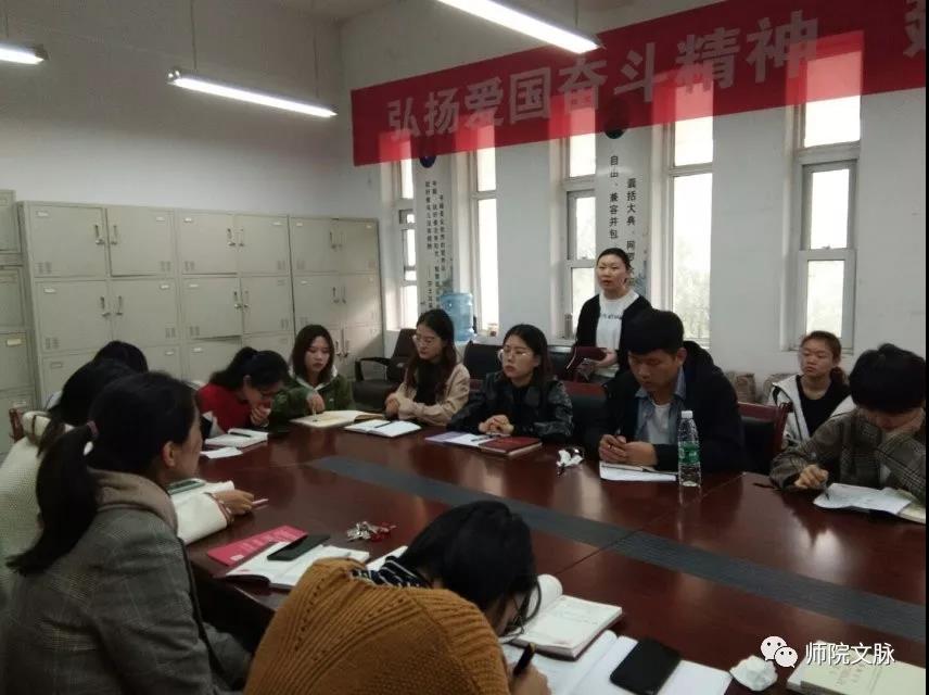 为进一步深入推进学生支部“不忘初心、牢记使命”主题教育,感受共产党员和革命战士崇高的理想信念和坚强党性,凝聚精神力量,强化责任担当,10月19日上午,文学院学生党支部在一号教学楼D321党员活动会举办了主题为“诵读红色家书,牢记初心使命”的读书分享会。会议由学生支部书记王黎主持。