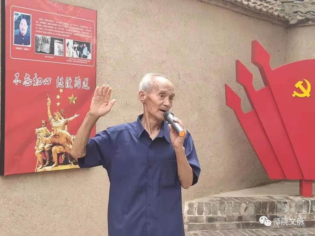 范家庄是韩城第一个党支部的诞生地。在范家庄红色教育基地,当地76岁的老党员张兴国同志满怀深情的为大家详细讲述了范家庄党支部成立发展的光辉历程和革命先辈为革命抛头颅洒热血的英勇事迹,一幅幅记载历史的珍贵图片,让人震撼;一个个感人至深的革命故事,让人铭记。随后,文学院党总支在范家庄第一党支部集中为第一、二季度入党的11名党员举办了一场意义深刻的“生日会”,王凯书记为过政治生日的党员逐一发放了生日贺卡,提醒并激励党员要牢记身份,不忘初心,牢记使命,奋发作为。全体党员佩戴党徽,在党总支书记杨阳同志的带领下,面向鲜艳的党旗重温入党誓词,表达了大家不忘初心、牢记使命、忠于祖国、忠于人民的决心。