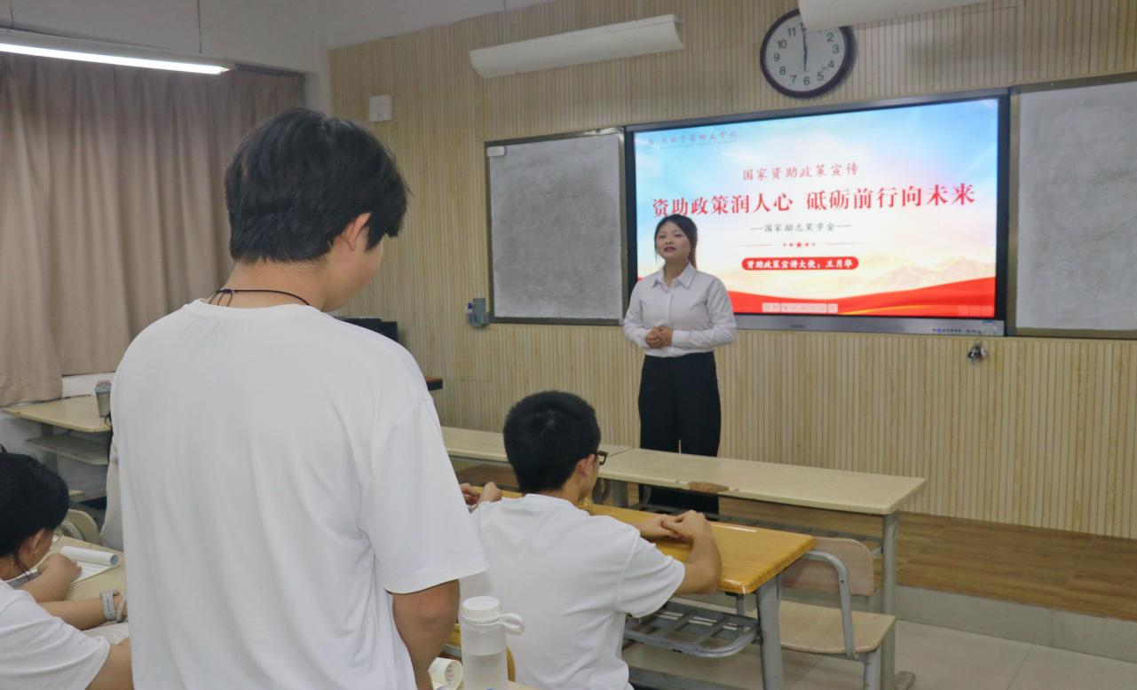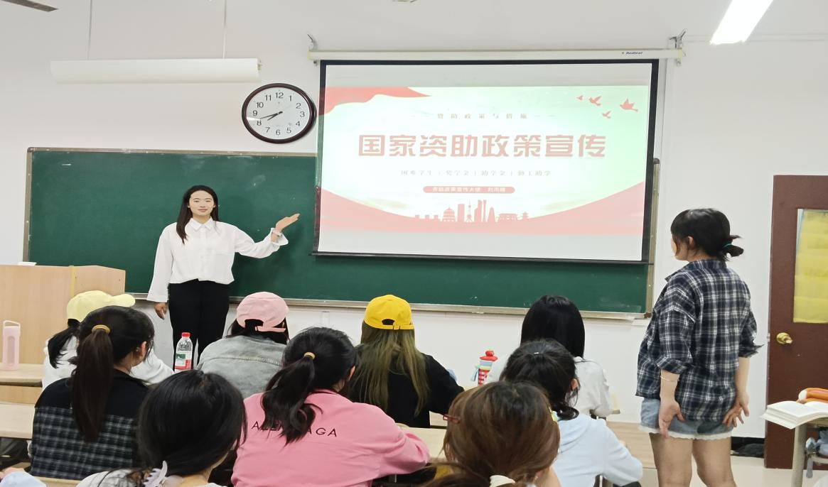 为进一步加大学生资助政策宣传力度,更好发挥优秀学子的示范引领作用,强化受助学生的感恩意识,切实提高资助宣传工作质量和资助育人实效,确保每一位有需要的同学都能了解并享受到相应的资助。人文学院资助宣传大使王月华、刘雨晴、孙奕佟、杜蕾蕾分别于2025年4月17日-4月24日,通过对受助学生、学生干部、在学生宿舍等实地开展了4场宣讲活动,覆盖学院700余人。
