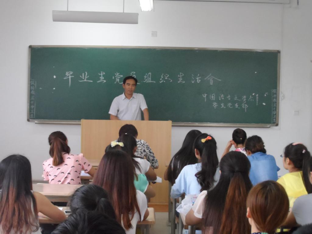 为贯彻落实学校关于毕业生教育和文明离校的会议精神,切实发挥毕业生党员的模范带头作用,全力做好毕业生离校前的安全管理和教育服务工作,6月25日下午,中文系学生党支部在1号教学楼A201教室召开了毕业生党员组织生活会。会议由系学生党支部书记主持,系党总支书记杨泉、副书记庞蔚江和全体毕业班学生党员参加了会议。