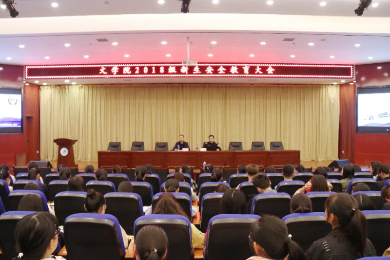 为进一步提高新生的安全意识,普及安全知识,增强学生安全防范和自我保护能力,9月25日晚,文学院与学校保卫处在学校学术报告厅联合召开2018级新生安全教育大会,邀请西安市公安局文化保卫支队副大队长曹扬警官对全体新生进行安全教育。大会由文学院党总支副书记孔养涛主持。
