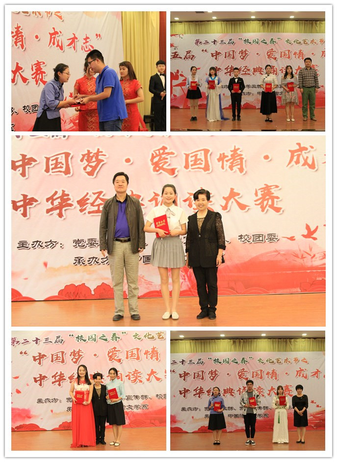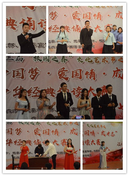 5月23日,由校学工部、宣传部、团委主办,中文系承办的第五届"中国梦·爱国情·成才志"中华经典诵读大赛总决赛在学校图书馆报告厅隆重举行。学校各相关职能部门负责人,相关院系党总支副书记、辅导员老师、媒体代表和学生代表400余人观看了比赛。大赛还特别邀请了陕西人民广播电台著名主持人海茵老师担任点评嘉宾。