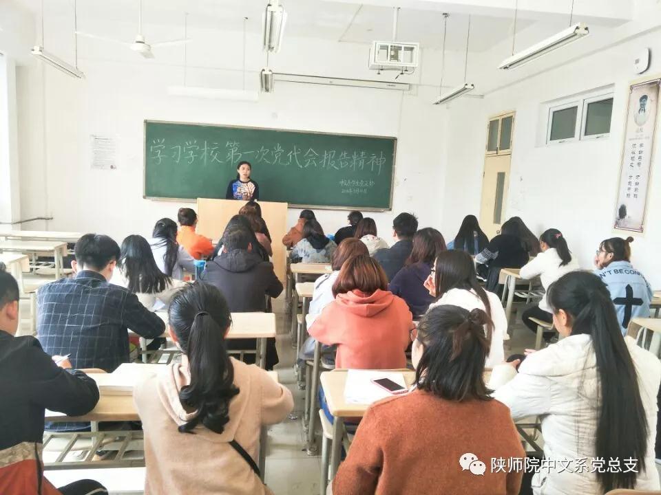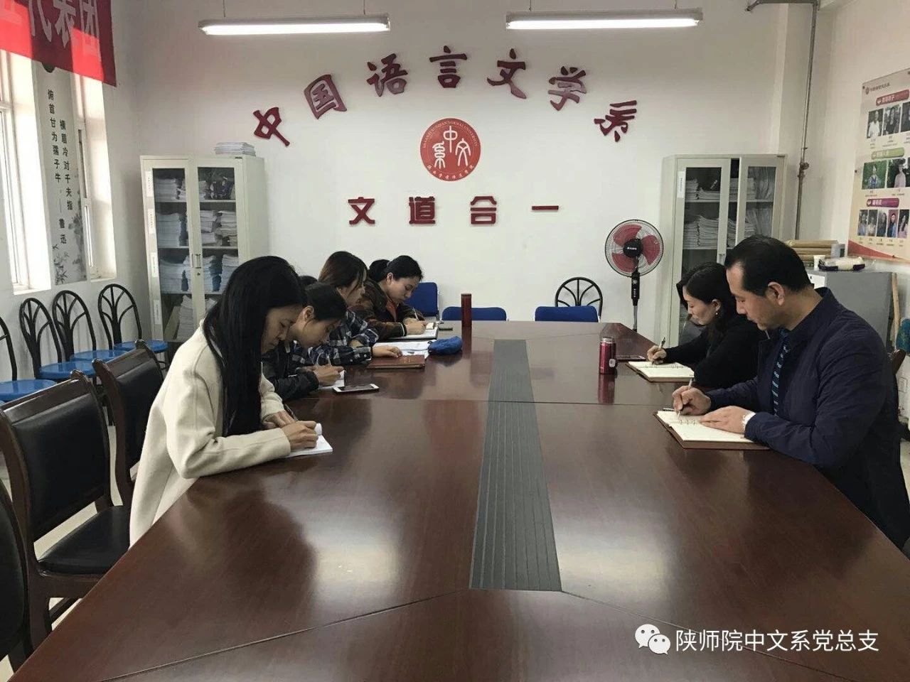 按照《关于认真学习宣传贯彻学校第一次党代会精神的通知》(陕师院党[2018]9号)文件精神,中文系党总支积极组织全系师生深入学习党代会精神,把集中学习与个人自学、通读报告与专题研讨相结合,切实增强学习的实效性。