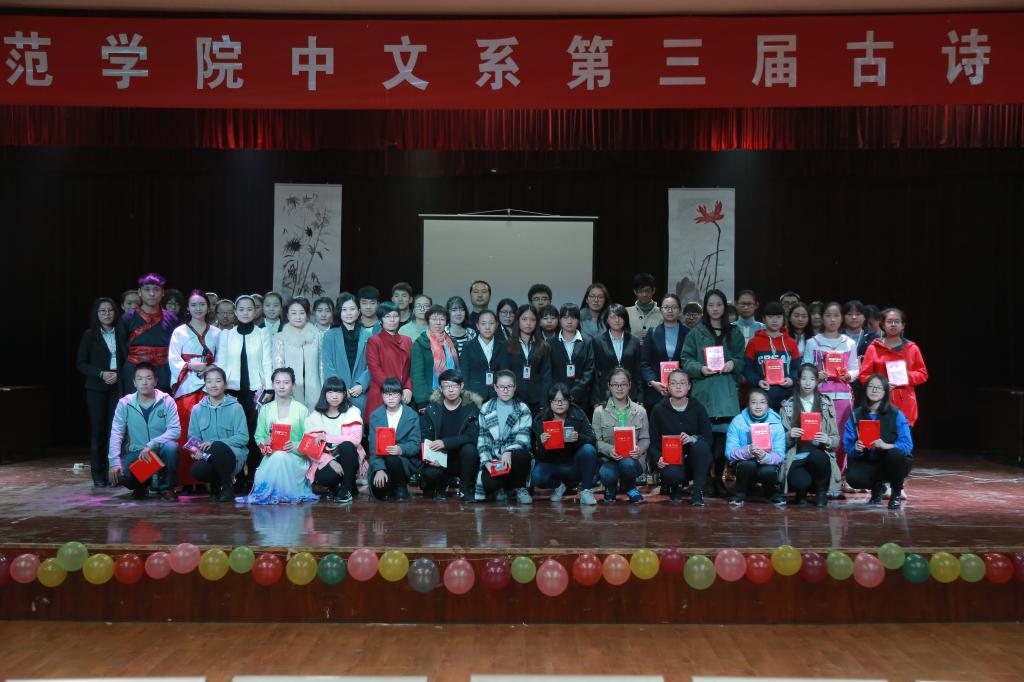 为了丰富校园生活,陶冶学生情操,中文系于近期开展了以“忆中华经典,品百家诗韵”为主题的第三届古诗文背诵大赛。此次大赛主要面向大一、大二的学生,以中文系学生为主,并诚邀兄弟院系学生参加。经过初赛、复赛的比拼,共有中文系、生命科学与食品工程学院、学前教育系、计算机与电子信息系和外语系的8位个人赛选手、6支团体赛队伍进入决赛。