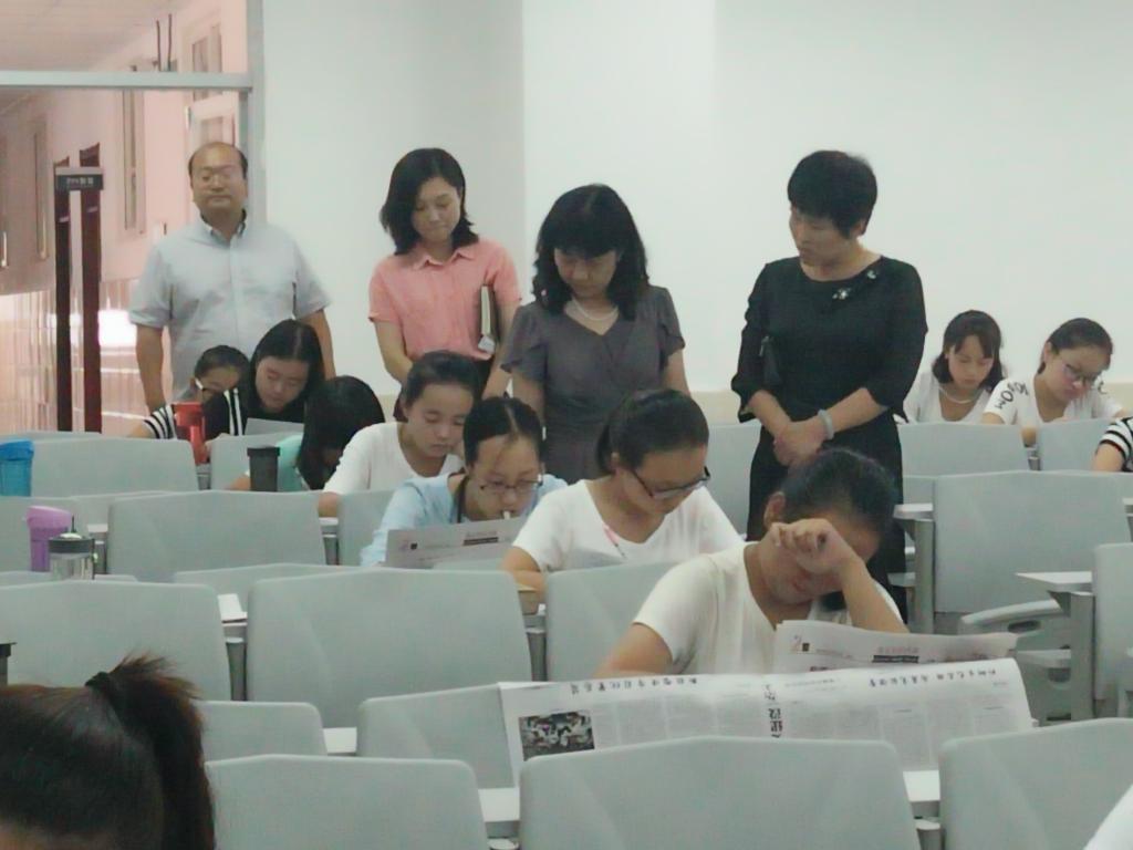 9月7日,我校第一届大学生规范汉字书写大赛(初赛)在四教楼举行,来自教育科学学院、生物科学与食品工程学院、学前教育系、中国语言文学系、化学与化工系近150名同学参加比赛。副校长相艳及教务处中文系相关负责人检查指导考试情况。