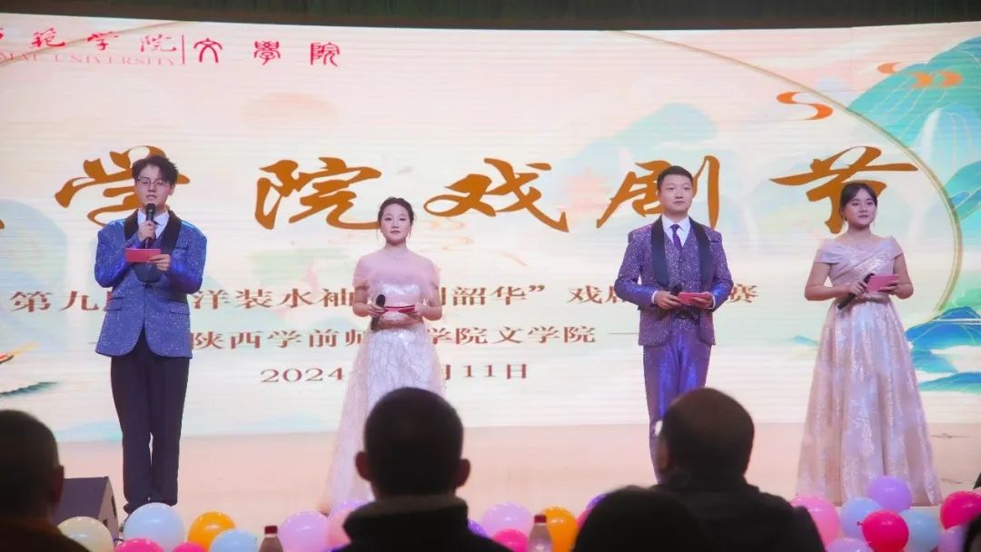 12月11日晚,文学院第九届“洋装水袖,戏剧韶华”戏剧节决赛在长安校区大学生活动中心正式拉开帷幕。本次大赛邀请著名制片人、导演王煜权以及文学院杨亚娟、陕艳娜、梁英平、苏瑞琴四位老师担任评委。文学院党委书记赵淼、院长牛文明、马克思主义学院副院长薛燕、经济管理学院教师梅林晨及文学院全体辅导员出席,现场300余名学生观看了本次大赛。