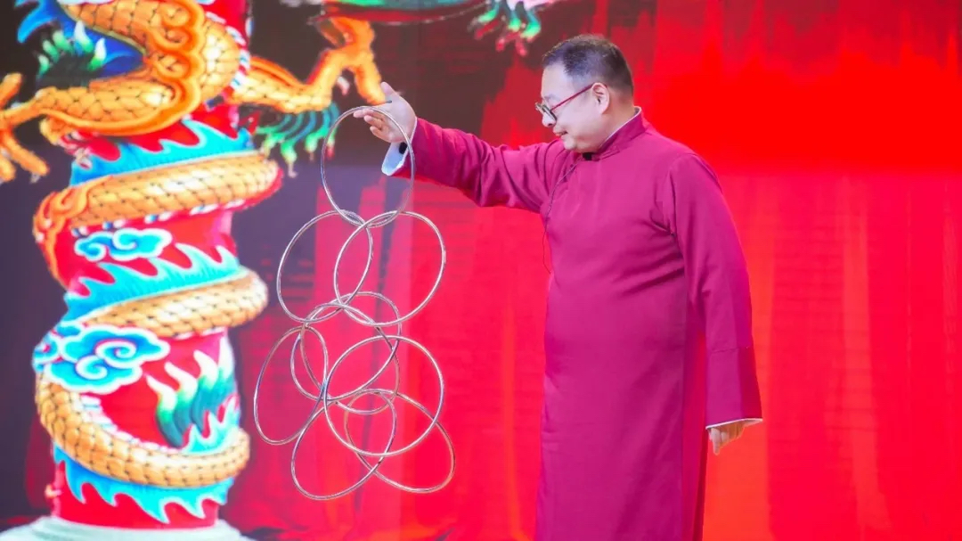 活动期间,梅林晨老师带来了精彩的九连环古彩戏法,此项表演不仅仅是技巧的展示,更是对传统文化的传承。观众们目不转睛,被这门古老艺术的魅力深深吸引,现场不时爆发出阵阵热烈的掌声。