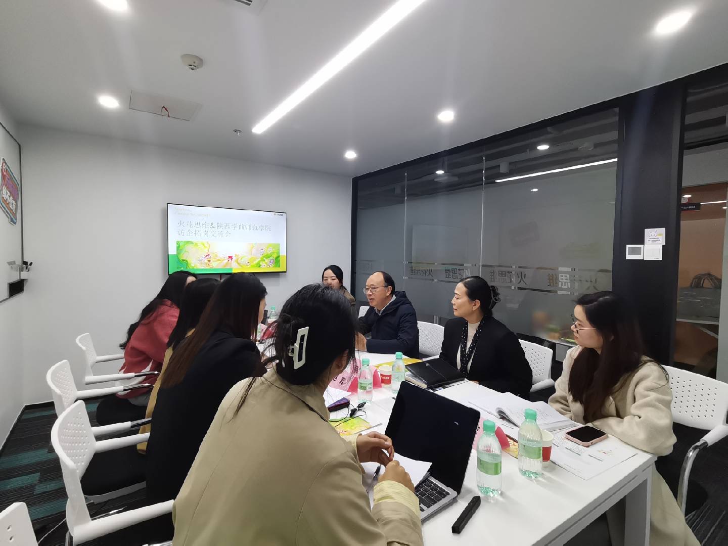 在座谈会上,火花思维人力资源部介绍了行业发展概况、企业成长历程、未来发展趋势以及公司当前的招聘岗位情况。火花思维西安公司负责人郭佳美对我校来访表示热烈欢迎,并表示希望通过此次座谈促进双方深度合作共赢。校党委副书记唐宏介绍了陕西学前师范学院的基本情况及此次访企拓岗行动的目的。他表示,希望通过本次访企拓岗促进校企合作、深化产教融合、推动学生实习就业,同时通过与企业深入交流,共同探讨新的社会发展背景下我校学生未来职业发展路径,以及如何进一步优化就业指导的方向和内容,实现人才的精准对接。文学院党委副书记庞曦介绍了文学院的人才培养体系、课程设置及学生在职业能力素养方面取得的成果,提出双方今后在人才供需方面的合作设想。学工部部长薛晓娟也强调,访企拓岗是实现产教融合的重要途径,希望双方通过搭建合作平台,使学生在学习理论知识的同时,能在企业实践中应用所学,提升实践能力,期待双方下一步能够达成长期的合作协议。双方还就职工工作时间、福利待遇、晋升通道等问题进行了交流,并对下一步开展专场招聘、深度推动人才对接达成了初步意向。