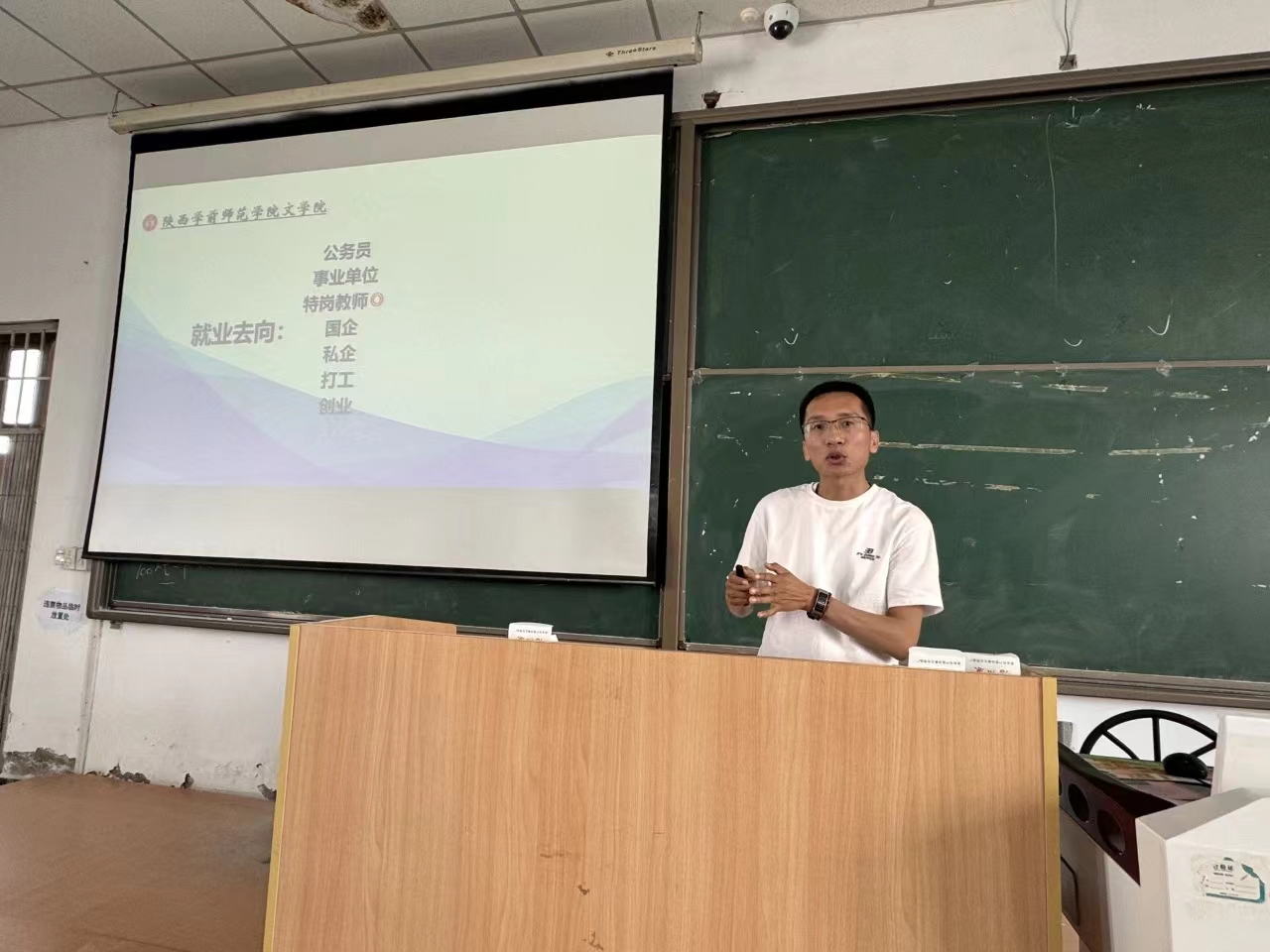 张波老师的讲座以“逐梦星辰 不负韶华”为题,从应届毕业生的视角,向同学们分享了自己求职就业以及职业发展的心得体会,主要包括“就业选择、就业准备、就业心理调适、职业发展”四个方面内容。首先,在就业选择方面,他介绍了“公务员、事业单位、特岗教师、国企、私企、打工、创业”等本专业同学就业的几个主要方向,着重强调了自我认知的重要性,建议大家首先要明确自己的兴趣、特长和价值观,这样才能更好地选择适合自己的职业方向,同时要保持学习的热情,不断提升自己的专业素养和技能水平,不要局限自己的求职岗位,以应对竞争日益激烈和形势不断变化的职场。