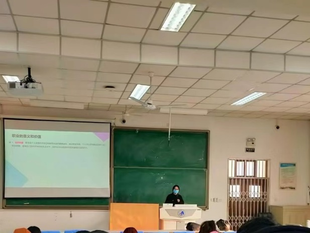王老师主讲《大学生职业目标评估》《应届大学毕业生的职业角色转变》。《大学生职业目标评估》从“认识自我”“探索职场”“职业目标”这几个方面,将人格类型、兴趣、职业三者紧密联系,使毕业生科学认知自我、探索职场,进行个人优劣势分析,进而明确职业目标。《应届大学毕业生的职业角色转变》从“求职准备”“融入职场”“融入社会”三方面讲解了求职准备的几个阶段以及初入职场时的角色转换,建议学生尽快从“要”的学习模式转变成“给”的社会模式,并学习采用4W1H信息沟通法进行有效的职场沟通,指导学生面对情境转换要做到强化自信、调整心态、虚心学习、脚踏实地。