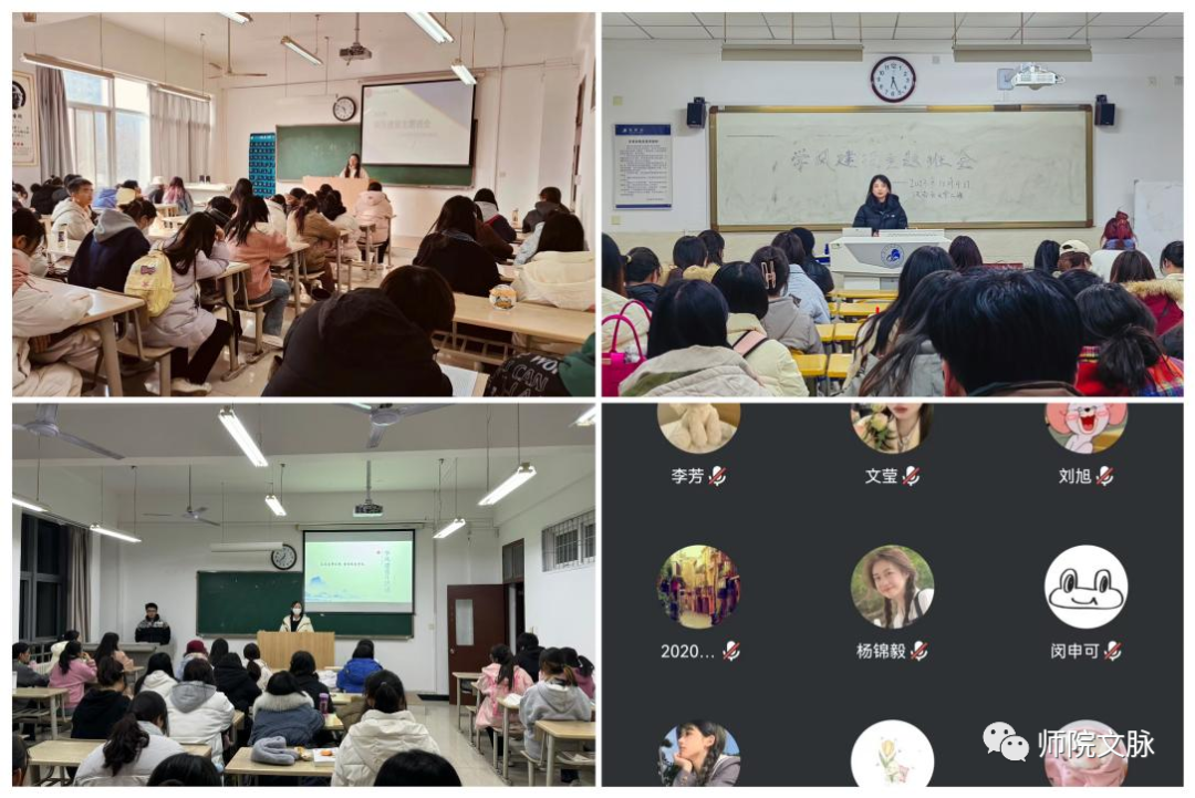 为进一步端正学生学习态度,提升学习的主动性、积极性,养成良好的学习习惯,营造浓厚学习氛围,培育“勤学善思”的优良学风,按照学校学风建设月活动相关工作部署,近期,文学院各年级以线上线下相结合的方式组织开展了学风建设主题班会活动。