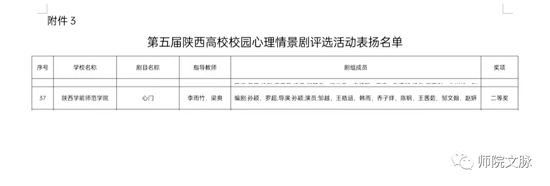 近日,陕西省教育厅通报了2023年第八届陕西高校“阳光护航”心理育人宣传季实践活动获奖情况。经我校报送的文学院学生心理情景剧作品《心门》喜获第五届陕西高校校园心理情景剧二等奖。