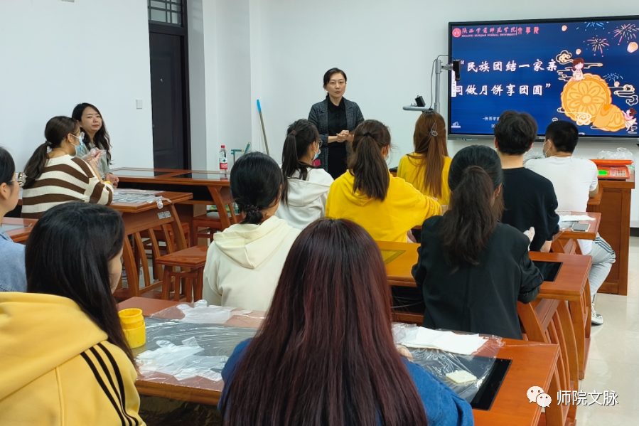 9月27日晚,师生们制作的手工月饼烤制成熟后,团总支书记梁爽和新生辅导员王彩旭带领学生干部代表将精心包装的月饼送到了正在上晚自习的大一新生手中,并将少数民族同学的祝福带给新生们,让新生们远离家人也能够感受到浓浓的节日气氛和关心关怀。