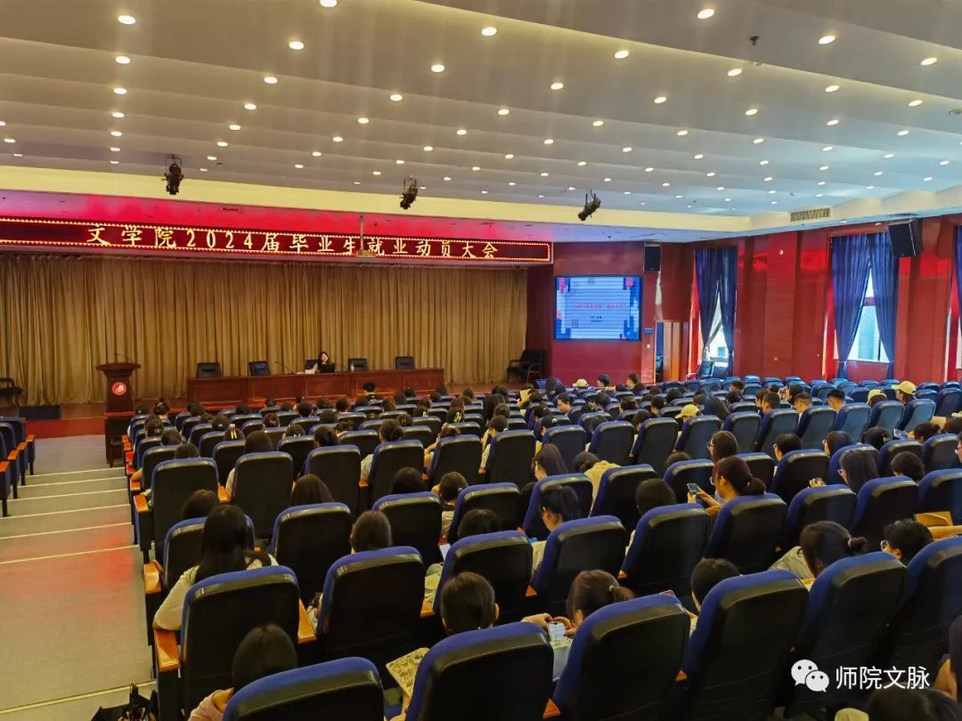 为切实提升2024届毕业生就业意识,充分调动毕业生就业的积极性和主动性,树立正确的就业观,9月15日上午,文学院在图书馆学术报告厅召开2024届毕业生就业动员大会。文学院党委副书记庞曦、毕业班辅导员和2024届毕业生共近300人参加了大会。大会由辅导员康乐主持。