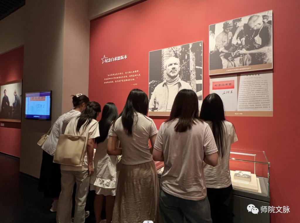 西安国家版本馆坐落于西安市鄠邑区,南倚秦岭,北望渭川,主体为高台建筑,呈现出大气磅礴的汉唐风格。在讲解员的带领下,师生们观看了版本馆的宣传片,参观了“赓续文脉 踔厉前行——中华文化经典版本展(西部篇)”展览,充分了解中华经典版本故事和历史发展脉络,深刻感悟中华民族源远流长、博大精深的历史文化。参观过程中,师生们被馆内独特的设计、丰富的馆藏和多彩的表现形式深深吸引,不时驻足,或凝视拍照,或互动体验,无不为中华民族对世界文明的贡献而赞叹及自豪。