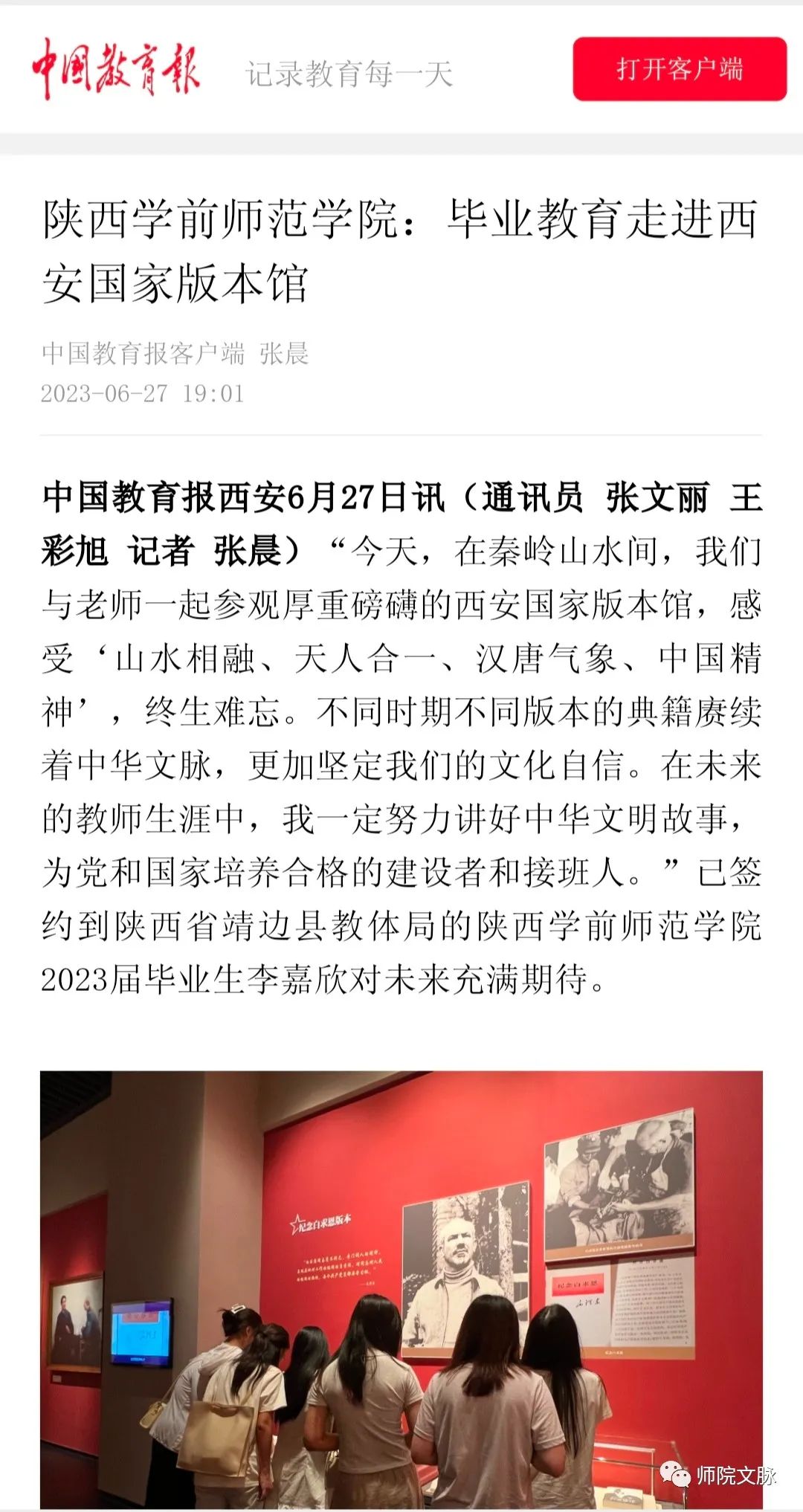 本次活动既是一次别开生面的毕业教育,也是一次意义深远的师德教育。即将步入教师岗位的2023届毕业生李嘉欣同学表示,“在未来的教师生涯中,我一定努力讲好中华文明故事,为党和国家培养合格的建设者和接班人”。青年教师郭禹含也深有感触:“建设教育强国是历史赋予教师的庄严使命,我们一定要坚定文化自信,奋发有为,把全部身心投入到培养中西部基础教育优秀教师的时代伟业之中。”《中国教育报》客户端对本次活动进行了宣传报道。