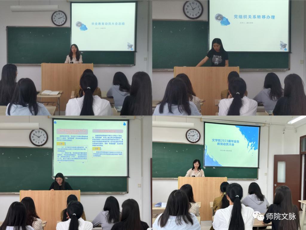 为进一步做好2023届毕业生教育工作,确保毕业生顺利平稳离校,6月20日下午,文学院在A301召开毕业生教育动员大会。会议采取线上、线下结合的方式进行。文学院党委副书记庞曦、辅导员老师们及全体毕业生参加,会议由毕业班辅导员王彩旭主持。