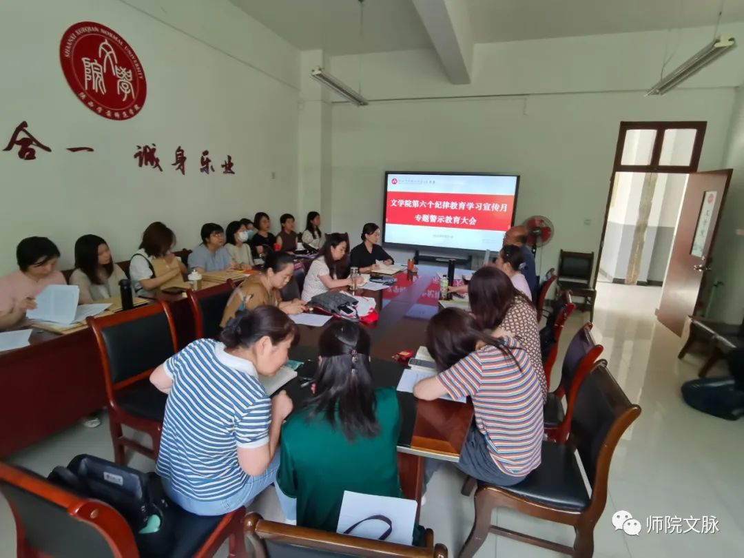 根据学校纪委《关于开展专题警示教育的通知》要求和学校第六个纪律教育学习宣传月相关的工作安排,6月21日下午,文学院在博文楼A211会议室召开警示教育大会,会议由学院党委书记杨阳主持。