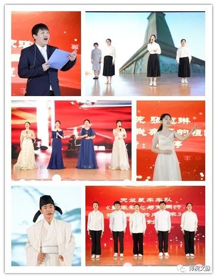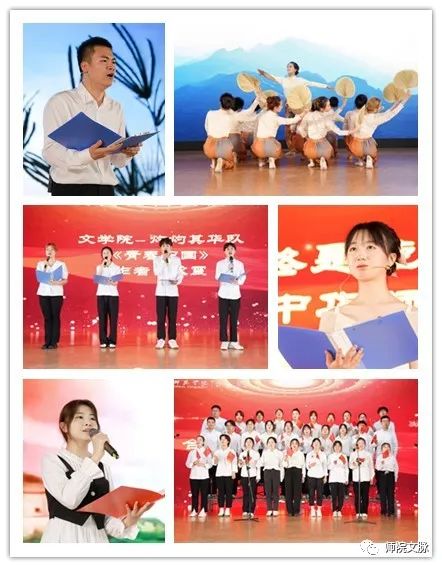 现代舞《风吹稻花香两岸》带领观众们感受轻轻吹拂的微风裹挟着稻花的清香,徐徐开启了团队赛篇章。团队赛诵文中既有中国古代和近现代文学中经典诗文,也有共产党人在革命年代写下的催人奋进、感人至深的经典文章,还有当代学子以原创诗文致敬祖国伟大复兴的深情表达。选手们以不同的形式传递了自己对先辈的敬仰以及对伟大祖国的热爱之情。
