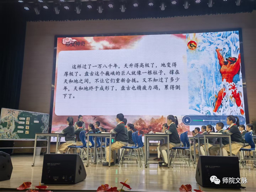 上午,同学们观摩两节示范课。王西乐老师执教神话《盘古开天地》,他带领学生在朗读中品味“神奇”,想象画面,小组合作,创编神话。胡星老师执教说明文《花钟》,胡老师注重在阅读中渗透学法指导,引导学生学会提取重要信息,强化读写结合,在合作仿写中深化阅读所得。课后,陕西省特级教师、西安市碑林区大学南路小学李彦平老师围绕两位老师的课堂教学和“教学教什么”问题进行了深入浅出的精彩点评。