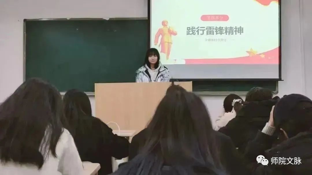 3月5日下午,文学院团总支、学生会组织开展“团支部书记上讲台”主题宣讲活动,通过对雷锋精神的讲解与分享,教育引导青年学子深入学习习近平总书记关于弘扬雷锋精神的重要论述,感悟雷锋精神的内涵与意义,深刻把握雷锋精神的时代内涵和实践要求。通过此次宣讲活动,使同学们进一步升华了思想,凝聚了共识,激发爱党爱国爱社会主义巨大热情,为增强集体凝聚力、营造和谐融洽的校园气氛起了良好推动作用。