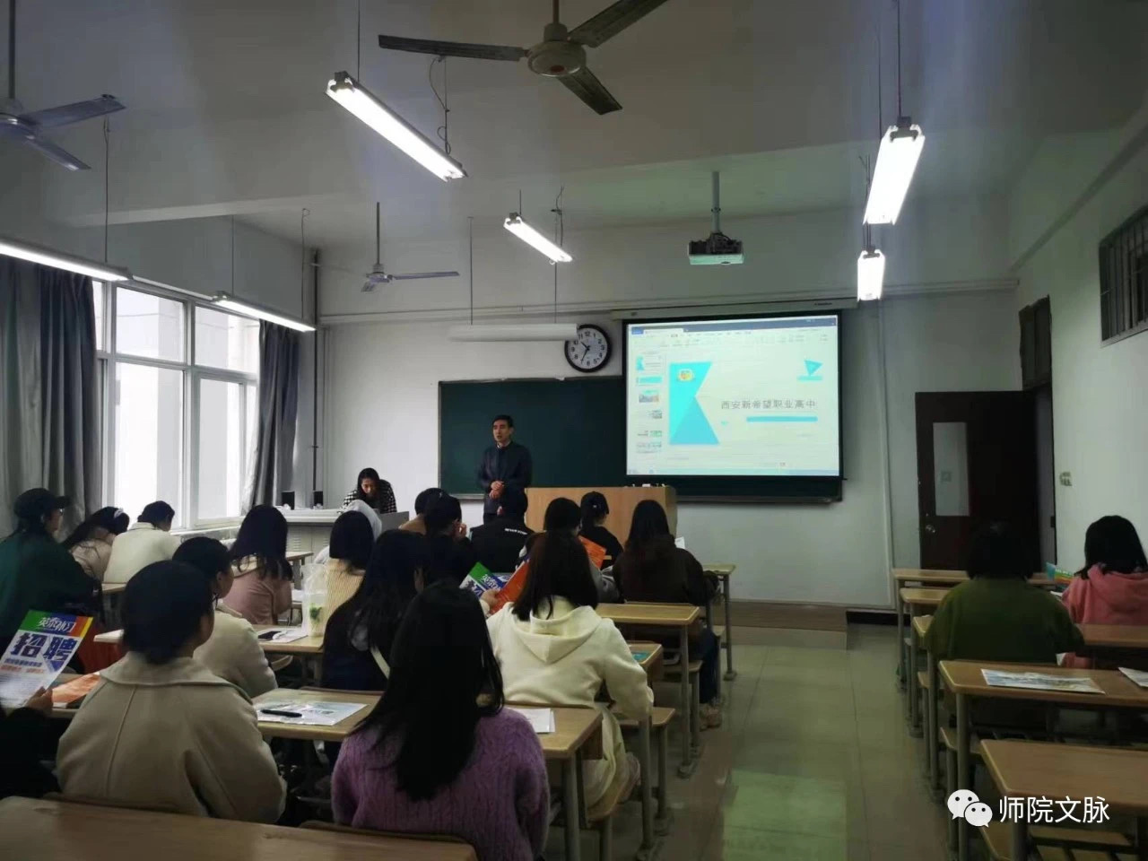 座谈会结束后,英泰教育校长陈江涛与新希望职业高中校长方明伟在文博楼A302教室作了招聘宣讲,向与会的毕业生详细介绍了本单位的具体情况,并就毕业生关心的上岗条件、招聘流程和福利待遇等问题进行了详细说明。当日下午,该集团下属的西安虹途职业高中、新希望职业高中、英泰补习学校等三家用人单位进行了现场招聘面试,2023届毕业生踊跃报名、积极应聘,最终约有70名学生参与了面试。