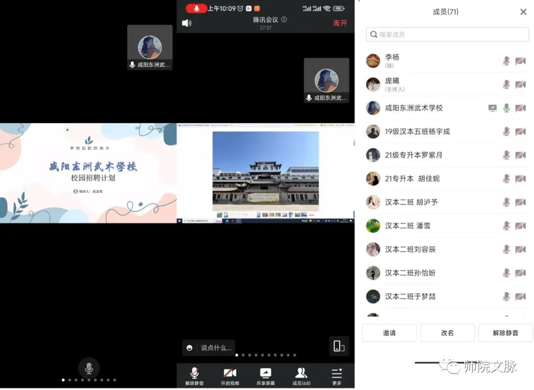 12月10日上午,文学院举办第三场用人单位宣讲会,邀请咸阳东洲武术学校为毕业生作宣讲。文学院、化学化工学院、教育科学学院共5个专业70余名应届毕业生以及毕业班辅导员参加了宣讲会。会上,庞曦副书记向用人单位介绍了参加本次宣讲会毕业生的所学专业、培养方向、毕业去向等情况。咸阳东洲武术学校吕主任从学校历史沿革、教学特色、招聘岗位、教职工福利待遇等方面以及学校所在地三原县的基本情况作了详细介绍,并诚挚邀请同学们前来参观考察。在交流互动环节,参会同学就应聘教师岗位条件、薪资待遇以及如何签约等问题进行了现场提问,吕主任都给予了细致的解答。本次宣讲会,为同学们提供了一次很好的就业机会,也使同学们更加清楚地了解了目前的就业形势和用人单位的实际需求,为自己进行合理定位求职目标、有效采取求职行动提供了帮助。