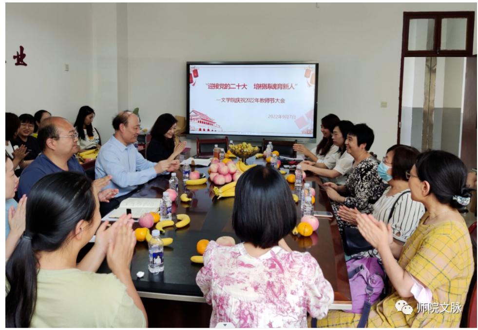 在第38个教师节来临之际,9月7日下午,文学院在博文楼A211会议室隆重举行庆祝会,全体教职工共聚一堂,共同欢庆教师节。学校党委副书记、纪委书记王凯同志参加了本次活动。会议由学院党委副书记庞曦主持。