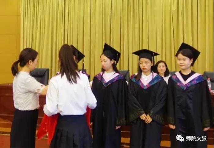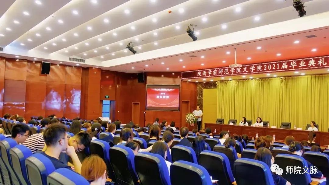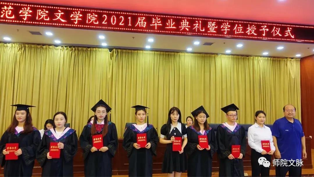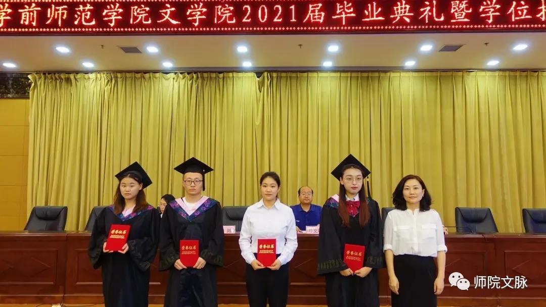 杨阳书记宣读了陕西学前师范学院《关于准予刘晗等2021届学生毕业的决定》和《关于授予祝艳冬等2784名学生学士学位的决定》。身着导师服的牛文明院长为汊语言文学专业毕业生逐一拨正流苏、颁发学士学位证书并握手致贺,给每位即将离校的毕业生送上了母校最诚挚的祝福,为同学们的四年大学时光画上一个圆满的句号。