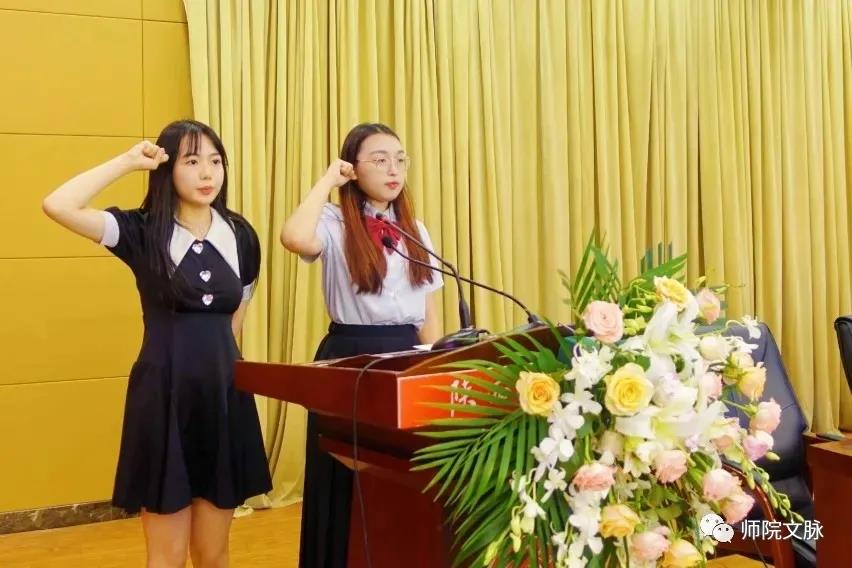 全体毕业生在肖文婷、鲁豫彤两位同学的带领下庄严宣誓:不忘师恩,铭记校训,认真做人,踏实做事,厚德博学,求实创新。用智慧和才华肩负起民族复兴的使命;用青春和热血承担起国家富强的责任。