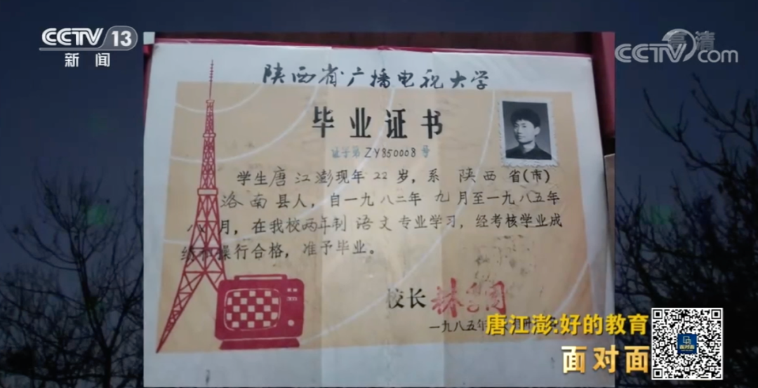 就这样,“走投无路”的唐江澎成为一名民办语文教师。唐江澎说自己其实不懂教学,唯一会的,就是把自己的学习经验分享给学生。而当时的教学目标,就是让学生考高分。三年时间,唐江澎自学了电大的课程,取得了中文大专的学历。后来,他又用两年的时间到陕西教育学院进修,获得了中文本科的学历。