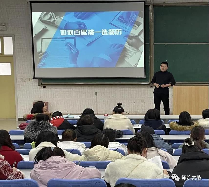 为进一步加强毕业生就业指导,提升毕业生就业意识,大力推进学院2021届毕业生就业工作,12月29日下午,文学院在积学楼C4阶梯教室召开了毕业生就业动员暨安全教育大会,邀请就业指导专家作题为《如何百里挑一选简历》就业指导讲座。文学院党总支副书记庞曦、毕业班辅导员和2021届毕业生参加了大会。大会由辅导员李雨竹老师主持。