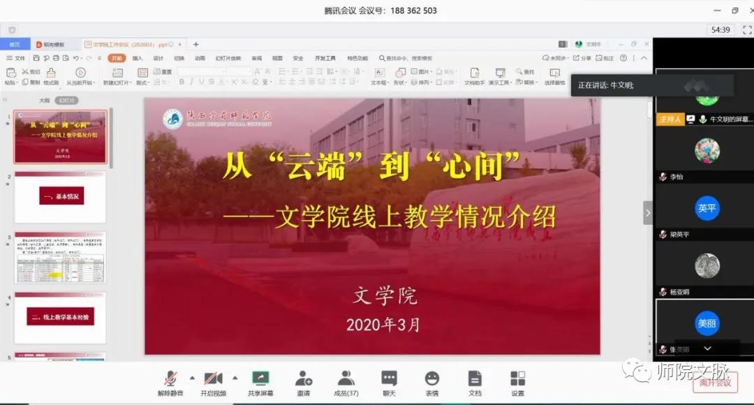 3月26日晚,文学院在腾讯会议召开全院教职工会议,传达学校2020工作部署会精神,总结线上教学经验,部署我院2020年工作任务。本次会议由牛文明院长主持。