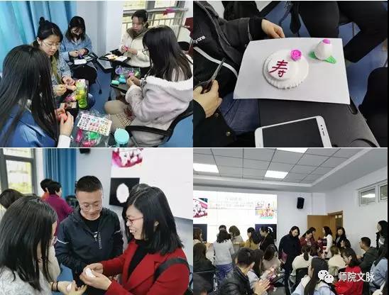 “陕北子洲花馍”项目组为了调动同学的积极性,举办了一场“‘捏一捏’花馍图案创意比赛”。他们将在场的同学分为6个小组,让人人动手,发挥创意,以超轻粘土代替面粉,捏出不同主题的花馍。文学院老师们也来为学生活动助兴,纷纷加入其中,现场气氛十分活跃。