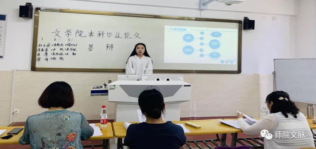 毕业论文答辩是我院人才培养的一个重要环节,也是检验学生综合素质与实践创新能力的有效途径。在2019届毕业论文写作和指导过程中,文学院严格按照学校教务处印发的《关于做好2019届本科毕业论文检测、送审、答辩、成绩评定及档案管理工作的通知》文件精神及教育部本科教学合格评估指标体系对毕业论文的要求,结合文学院实际情况,学生毕业论文在经过论文撰写(四稿)、指导教师指导、论文检测、校内送审等程序后进入答辩环节,过程规范,程序严谨。本次毕业论文答辩全面检查了学生毕业论文的情况,考察了本科阶段学生对基本理论、研究方法的掌握程度以及学生的独立实践和综合分析能力,是学生们对大学学习成果的总结,也为毕业生们的继续学习和就业打下了良好的基础。