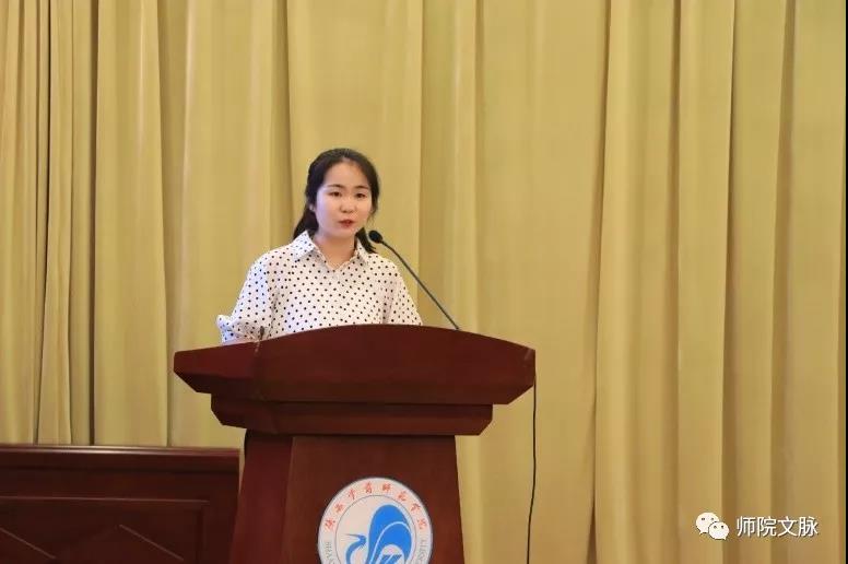 2016级汉语言文学二班李征同学作为学生代表发言,她将自己参加学院、学校师范生技能大赛的实践经验倾囊相授,结合了自身经历鼓励学弟学妹们要认真对待,积极参与,挑战自我,相信“不是我不能,而是我本可以,我却以为我不行”,只要勇于尝试,不懈努力,终将有回报。